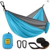 Enjoy a comfortable and relaxing outdoor experience with the Puroma CH27B Double Hammock. This camping hammock is perfect for any outdoor adventure, whether you're hiking, camping, or just relaxing in the park. The hammock is made of durable nylon material and features a blue color that adds a touch of style to your outdoor gear. With its double design, this hammock provides ample space for you and your friend or loved one. It also comes with straps for easy hanging and a secure fit. Whether you're looking for a place to sleep or just a cozy spot to relax, the Puroma CH27B Double Hammock is the perfect addition to your outdoor gear collection.