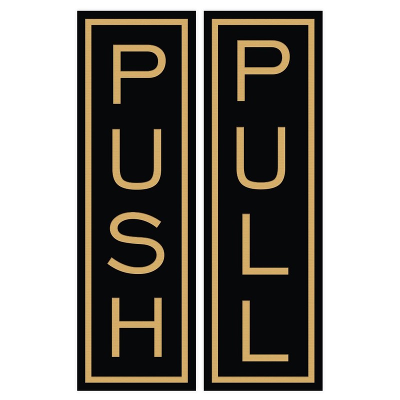 Push Pull Vertical Standard Door Sign w/Border (Black/Gold) - Medium