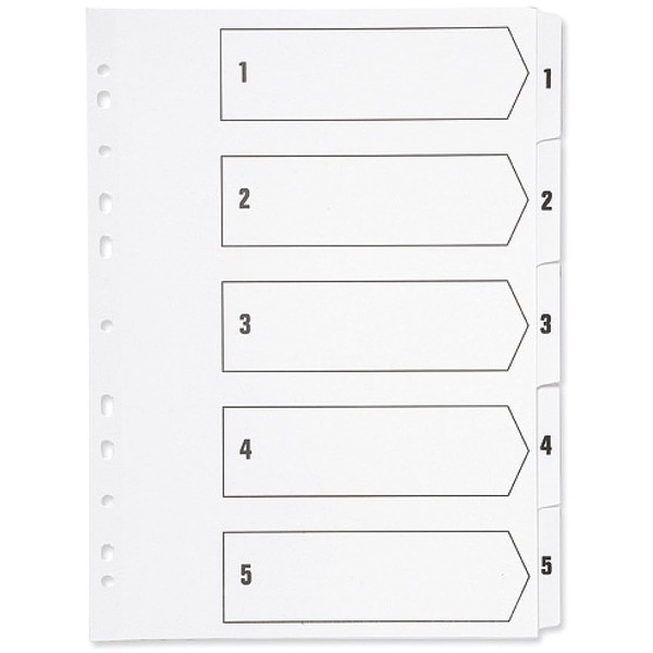 Q-Connect KF01352 Index A4 Multi-Punched 1-5 Polypropylene - White