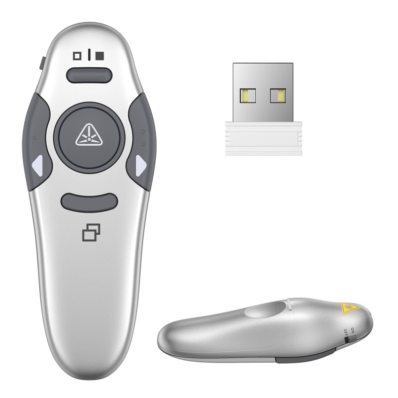 - 【EASY TO PLUG & PLAY】 Designed for hassle-free use, this wireless presenter requires no software installation. Just insert a AAA battery (not included), plug the 2.4GHz USB receiver into your computer, and you’re all set. It’s a must-have for classrooms, boardrooms, and beyond.