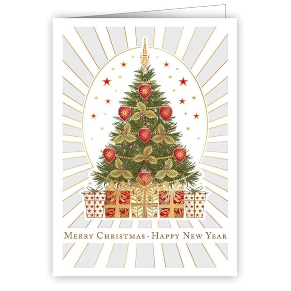 Quire Mini Card Tree & Presents,Green/Red,70x89mm