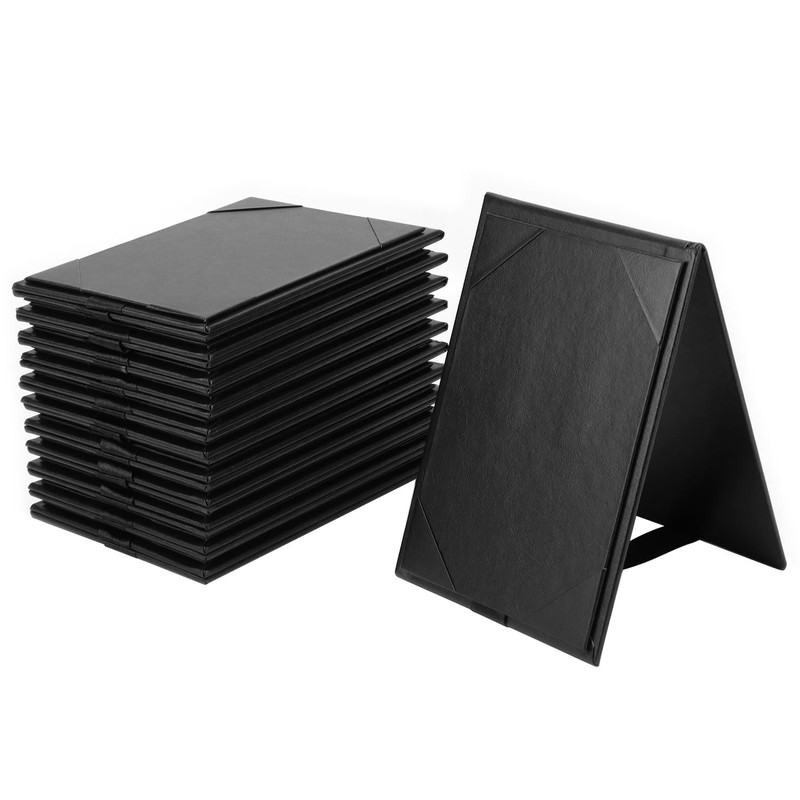 QWORK Double Sided Menu Holders 4 x 6 Inch, 12 Pack Foldable Display with Ribbon Support