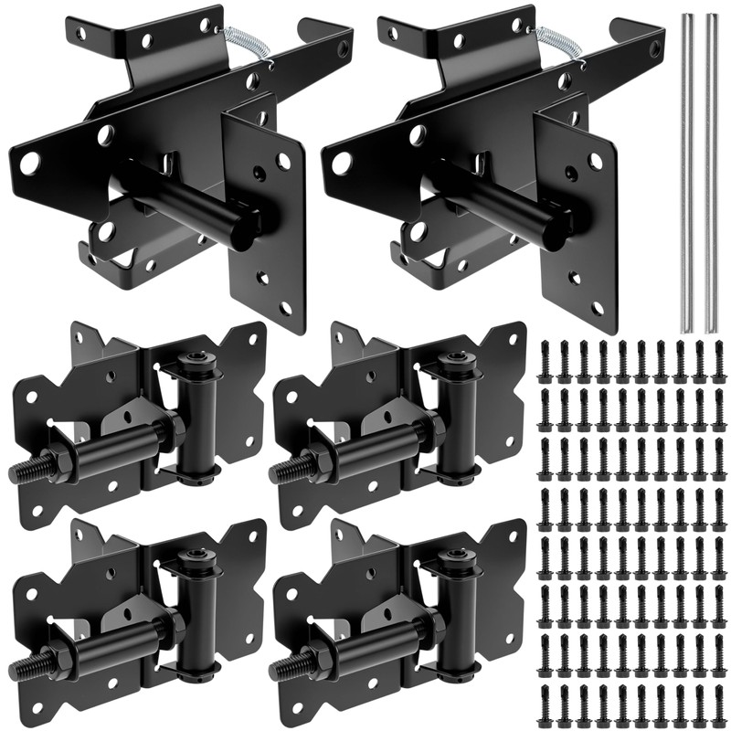 QWORK Heavy-Duty Self-Closing Gate Kit - 2 Sets, Hinges and Latch, Gate Hardware Kit, Includes 2 Latches, 4 Hinges