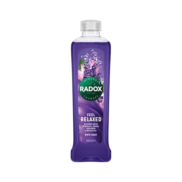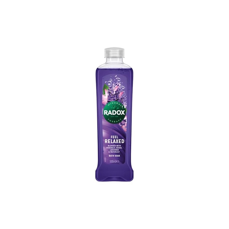 Product descriptionNature Inspired Flagrance Bath Soak Feel Relaxed. Radox Bath Therapy Relax 500Ml Nature Inspired Flagrance Bath Soak Feel RelaxedDirectionsTo use the product, fill the bath with water and add the Radox Bath Therapy Relax 500ML. Soak in the bath to feel relaxed.Safety WarningAvoid eye contact. If eye contact occurs, rinse well with warm water. If rash or irritation occurs, discontinue use.