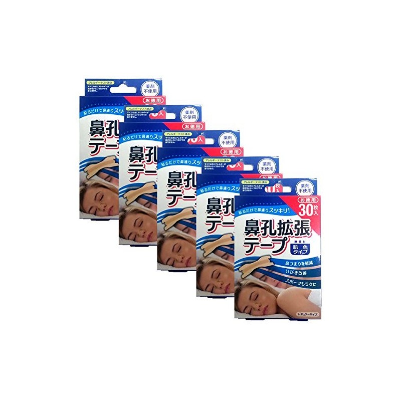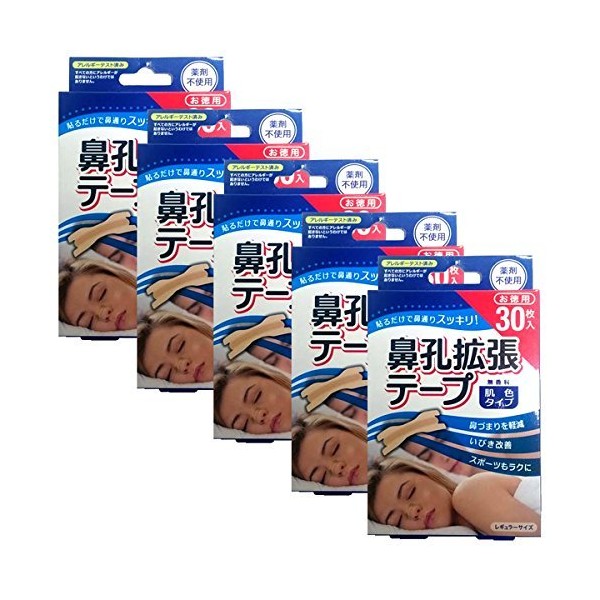 Rafelsa Nostril Expansion Tape, Regular Size, 30 Pieces, Unscented, 5 Box Set (Total of 150 Sheets)