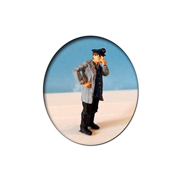 Railway man thinking in a coat, model railway figure, hand-painted, gauge 0 (zero), 1:45 for model railway, model making, diorama
