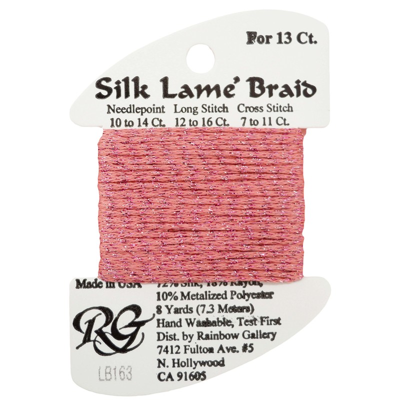 Rainbow Gallery Silk Lame Braid Metallic Needlepoint Thread Pinks, Medium Rose - LB163