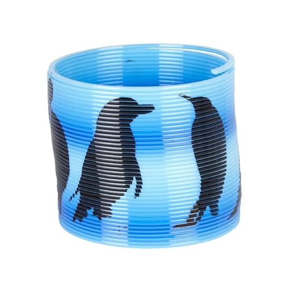 - This springy toy is blue with a penguin theme