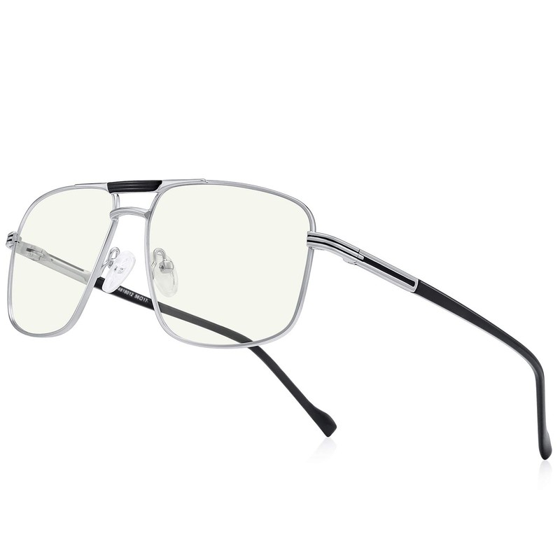 RB.Pilot Reading Glasses for Men Square Double Bridge Blue Light Blocking Computer Readers (silver, 1.50)