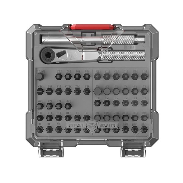 Real Avid X3 Precision Screwdriver Set with 1/4 Ratchet Wrench Bit Driver & Bit Extension - Tool Kit Includes Torx, Hex, Phillips, Flat & Square Bits (56 Piece)