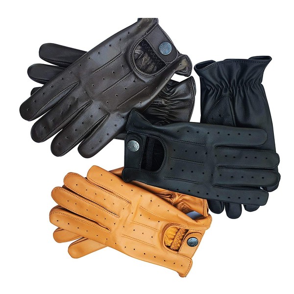 Real Soft Leather Mens Driving Gloves Without Lining (Black, Medium)