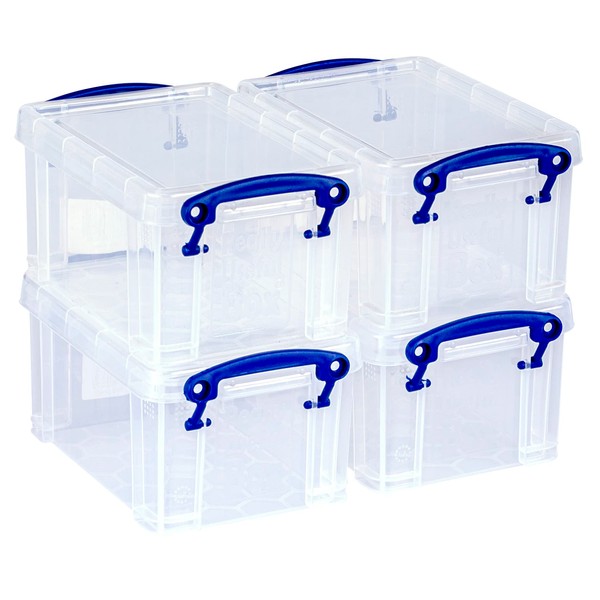 Really Useful Box 0.7 Litre Plastic Storage Box Clear (Pack of 4)