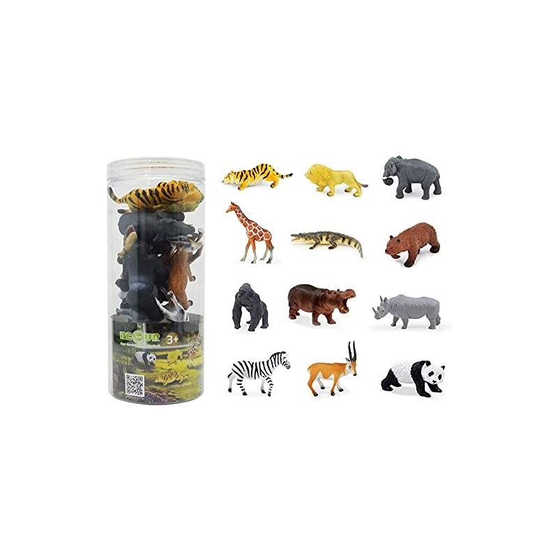 RECUR 12PCS Assorted Wild Animals PLAYSET, Ages 3+