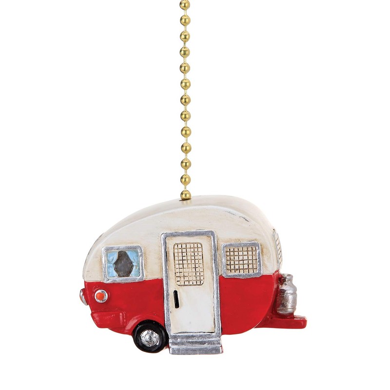 Red and White Happy Camper Ceiling Fan Light Dimensional Pull
