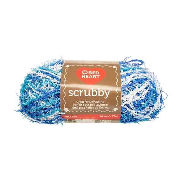 The uniquely textured yarn is great for knit or crochet dishcloths! Scrubby cloths clean dirty pots easier than cotton yarn dishcloths. Since Scrubby is polyester, it will dry a lot quicker. It exfoliates as well, so you can use it for washcloths.