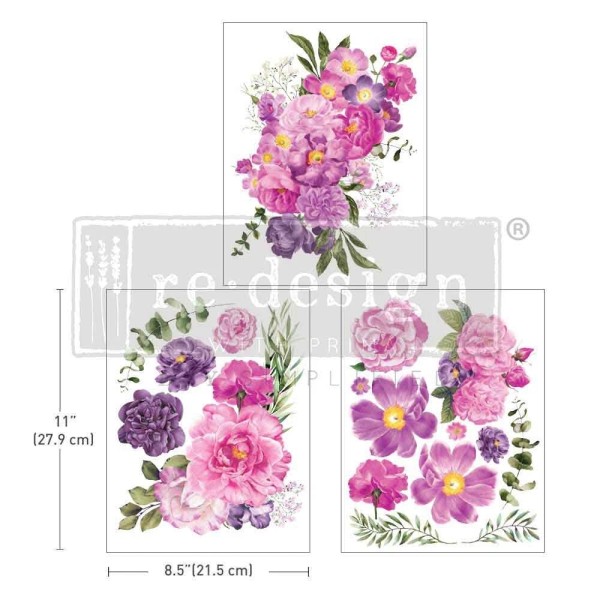 It’s a floral-filled summer and “Purple Blossom” is in full bloom with its gorgeous colored flowers and green accents! So many flowers for your investment, the Middy Transfer is economically friendly and so fun to use! Middy Décor Transfers are the perfect size for ANY project. To Use: Peel backing sheet from transfer and set on prepared surface. Rub on transfer with included stick or Transfer Tool. Remove top sheet and burnish with soft cloth. Seal, if desired, with water-based poly or wax.