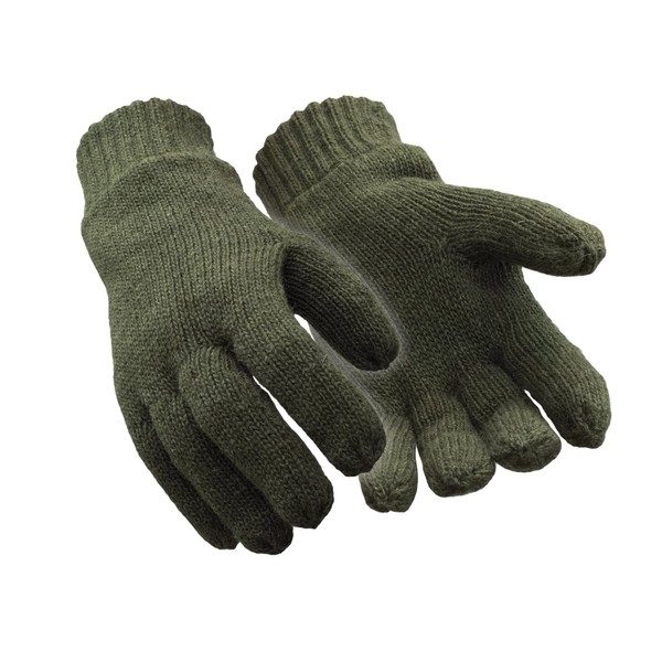 RefrigiWear Fleece Lined Thinsulate Insulated Ragg Wool Gloves (Green, Large)