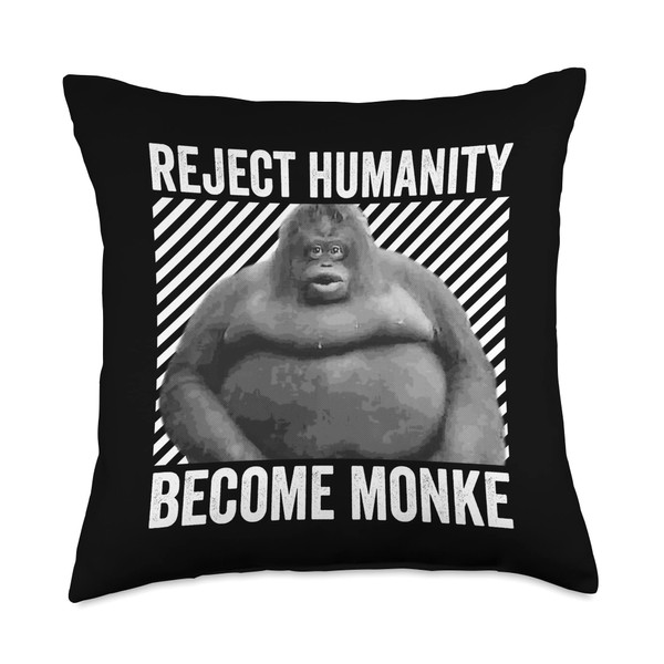 Reject Humanity Become Monke Le Monke Meme Throw Pillow
