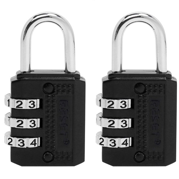 RESET-071 3 Digit Small Combination Lock Tiny Padlock for Mini Locker, Diary, Box,Luggage, Suitcase, Backpack, Black, 2 Pack