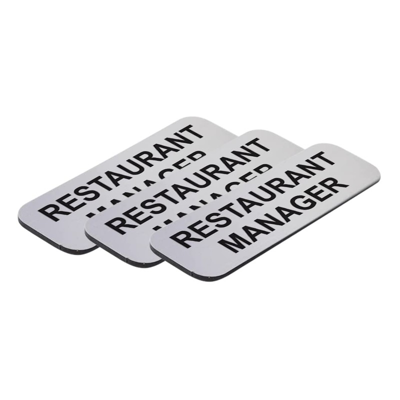 Restaurant Manager 1 x 3" Name Tag/Badge, Silver, (3 Pack)