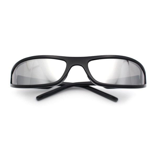 Retro Slit Thin Narrow Rectangle Curved Wrap Sport Plastic Sunglasses Black - Silver Mirror