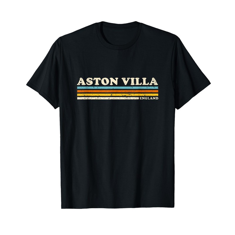 - Retro stripe vintage Aston Villa town of England UK tee.