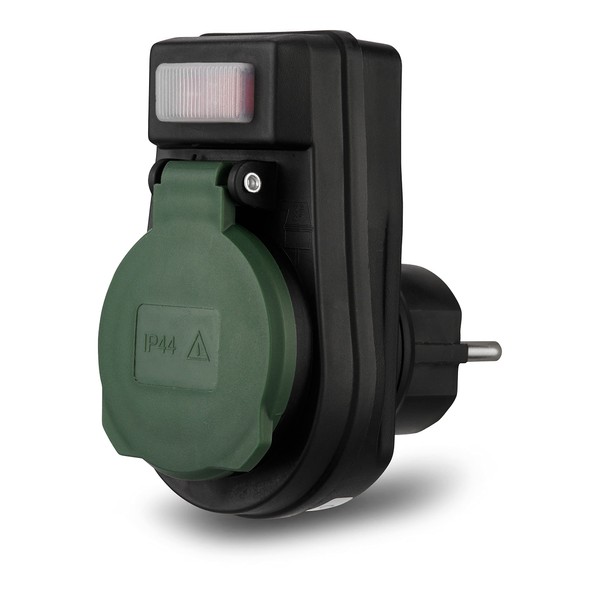 - The adapter socket is designed for indoor and outdoor use (IP44), for example balcony, terrace, garden or garage. Switch 1-pole