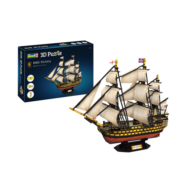 • The HMS Victory, the flag of Admiral Nelson in the lake battle of Trafalgar in 1805. 189 pieces 57cm Length Suitable for ages 10 years and up. Construction time. 240 minutes
