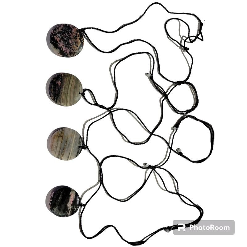 Nylon cord with glass bread accents. Verified Natural Rhodonite Pendant. Rhodonite is the stone of compassion. It activates the heart and clears any emotional wounds from the past. It's a powerful grounding stone that balances the emotions and yin- yang energy. Ultimately assist8ng with achieving one's highest potential. I have three sizes available and many pendants to choose from! I can also make a higher quality necklace from a pendant :) Message me for more details or assistance!