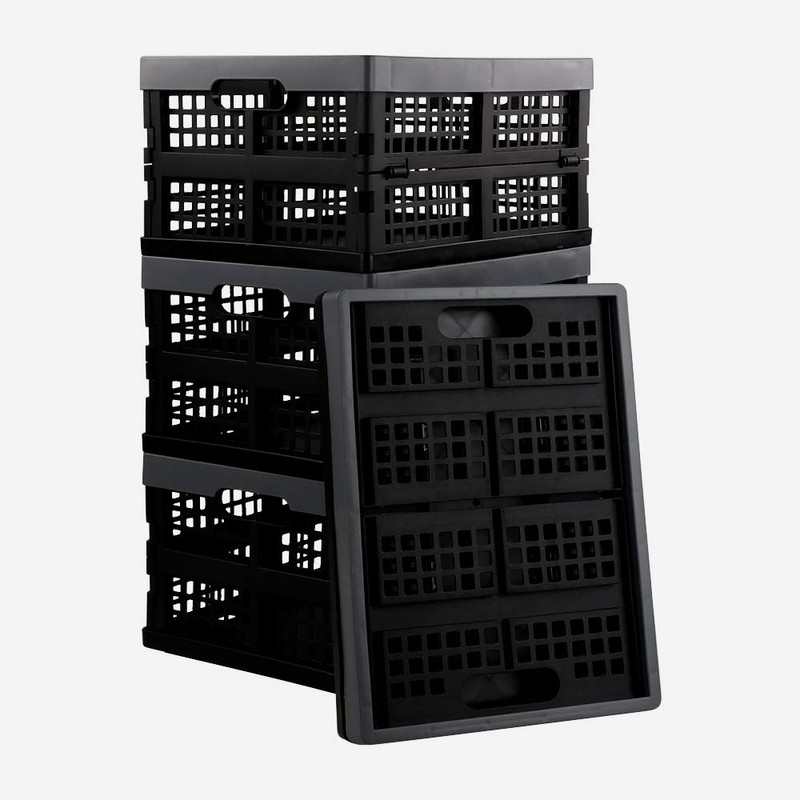 Rinboat 15 L Plastic Collapsible Crates, Stackable Folding Crates, 4 Packs