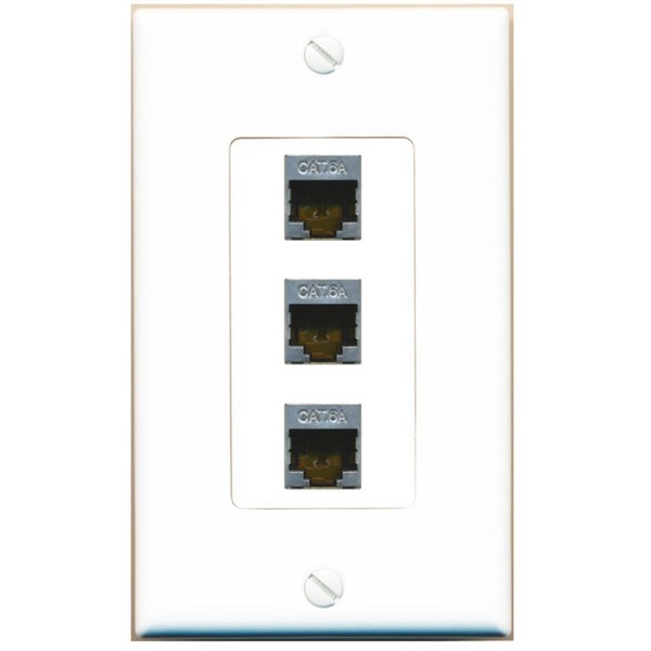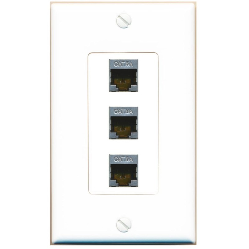 RiteAV CAT 6A 3 Port Shielded Cat6a Wall Plate 1 Gang Decorative White