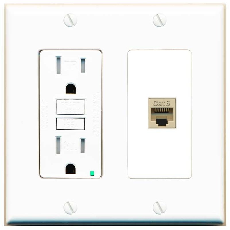 RiteAV CAT6-IVORY Wall Plate with GFCI Power Outlet [White]