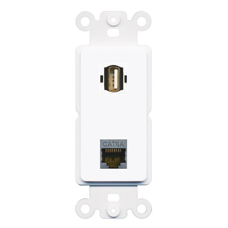 RiteAV CAT6A USB2 Rocker Insert Wall Plate Module [White]