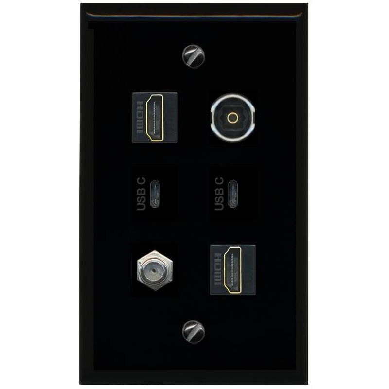 RiteAV Coax 2 HDMI TOSLINK 2 USBC Flat/Solid Wall Plate [Black]