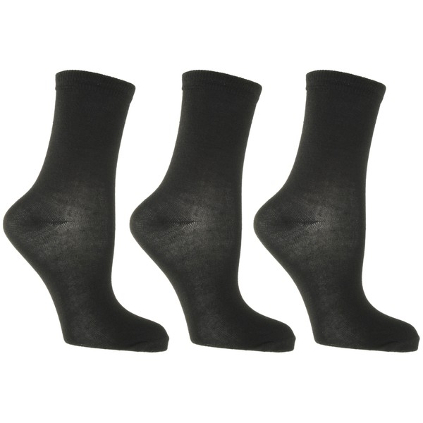 RJM Ladies Plain Ankle Socks Size 4-7 Black