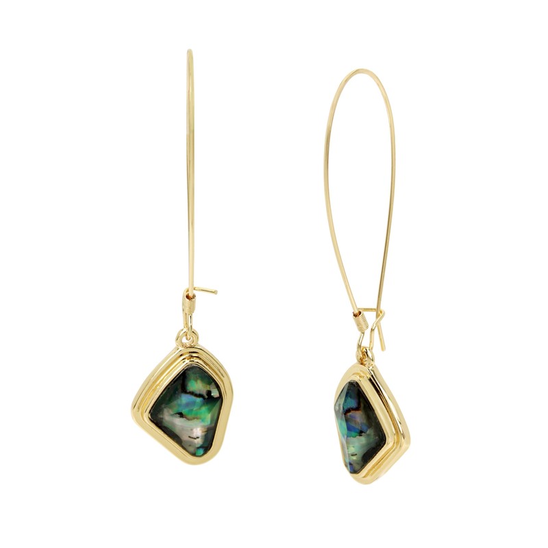 • MODERN EARRINGS : Sophisticated dangle earrings featuring elegant long ear wire paired with sculptural molten hardware drop adorned with dreamy abalone shell inlay.