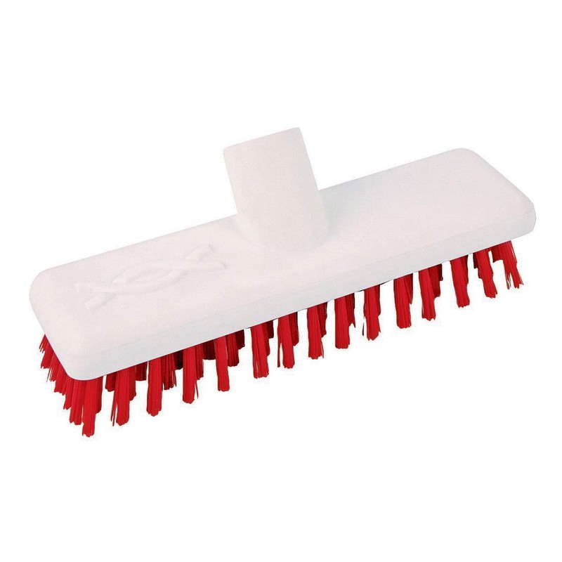 - Washable Deck Scrub 9 Inch (228mm) Red Stiff bristles are Stiff bristles brushes for aggressive scouring of non-slip floors etc. Just the job for sweeping indoor or outdoor areas with the advantage of being able to wash after use.