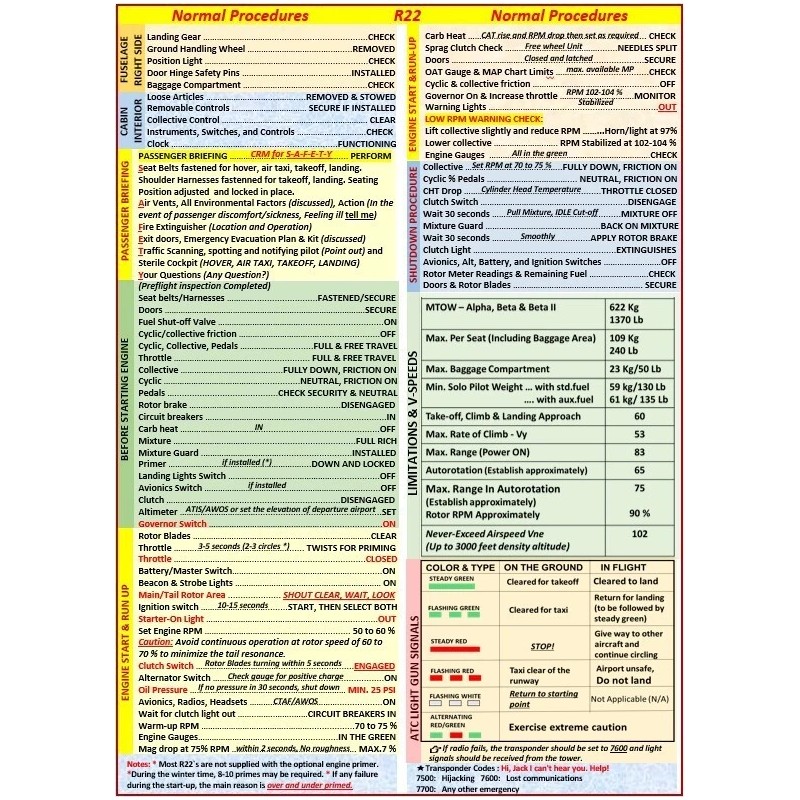 Robinson 22 Helicopter QRef All-In-One Checklist for Student Pilots. This purchase doesn`t include the POH.