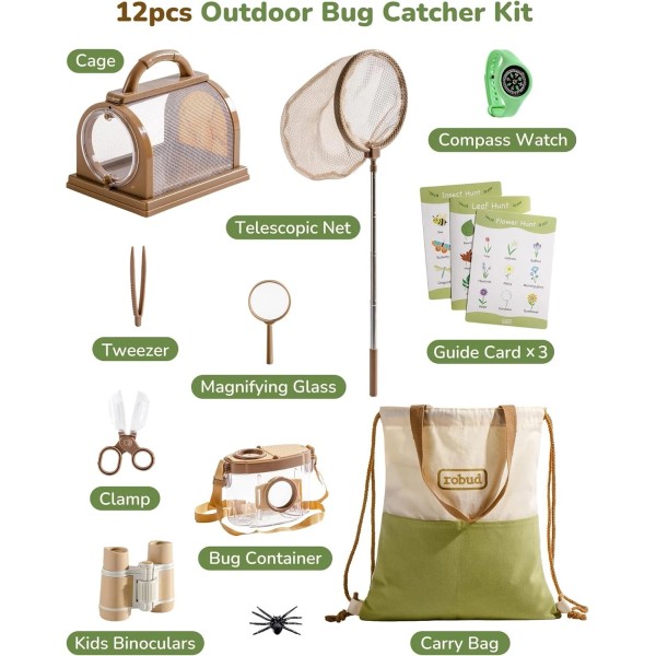 Robud Kids Outdoor Explorer Kit 12Pcs Bug Catcher Adventure Gift for Boys Girls