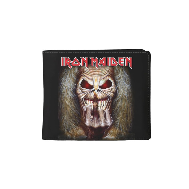 - Original Rocksax Iron Maiden Wallet - Designed in the UK, it has 6 slots for credit cards, vouchers or stage fights, a space for banknotes, an inner zip pocket for change, and an elastic strap to close