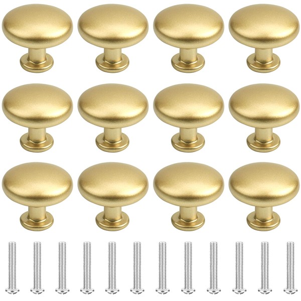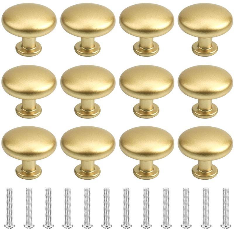Roellgs 12Pack Cupboard Knobs Black Door Knobs Black Cabinet Knobs Kitchen Door Knobs Round Draw Knobs Cupboard Door Handles (Round Shape, Gold)