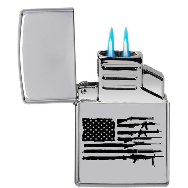 ROLYAD Dual Flame Torch Lighter American Gun Flag (Chrome)