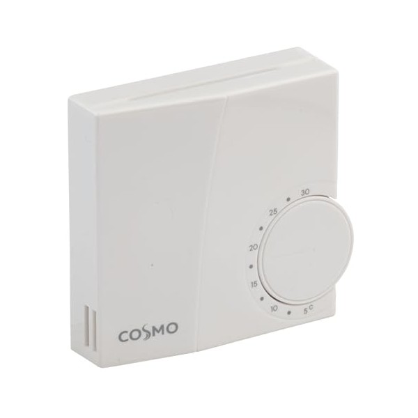 - Voltage 230 V (AC), 50/60 Hz. Switching current max. 10 (2) A, switching output 230 V, setting range 5 - 30 °C, connection via screw terminal, valve protection function (every 7 days), protection class IP 30, colour RAL 9010 (pure white), dimensions (H x W x D) = 75 x 75 x 25 mm