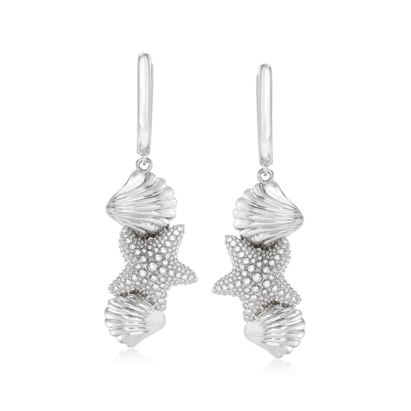 Ross-Simons Sterling Silver Seashell and Starfish Drop Earrings