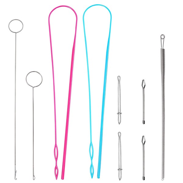 Roucerlin 9 Pieces Drawstring Threader Tool Set, Drawstring Puller Tool with Plastic & Spring Drawstring Threaders, Loop Turner, Rope Threader Clip, Drawstring Threading Tool Kit for Jackets Hoodies