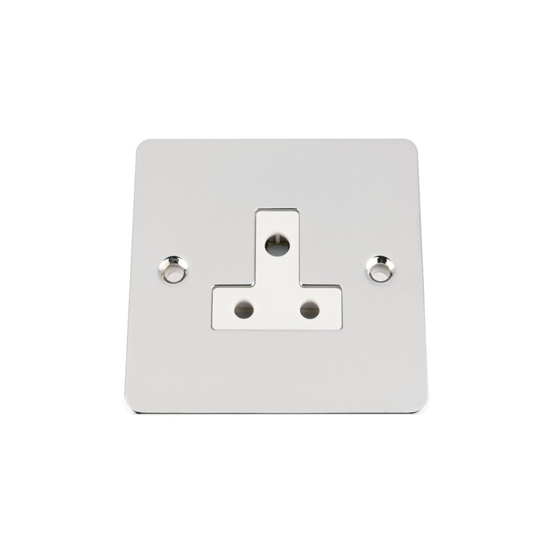 Round Pin Plug Socket 5 Amp - Polished Chrome - Flat - White Insert