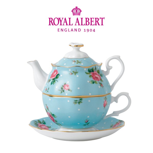 Royal Albert New Imperial Rose Tea for One Polka Blue / 로얄알버트 뉴황실장미 티포원 폴카블루