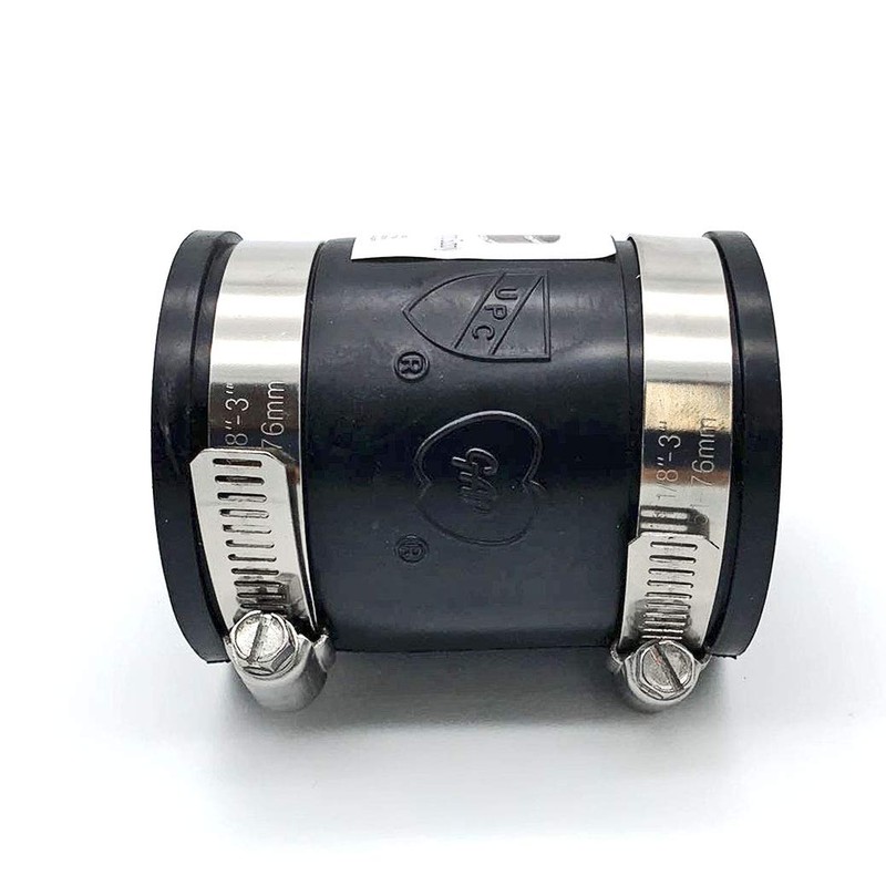 This Rubber Flex Coupling has the right solution for most applications. Made of tough elastomeric polyvinyl chloride (PVC), the flexible couplings are strong, resilient and unaffected by soil conditions. They are also resistant to chemicals, ultraviolet rays, fungus growth, and normal sewer gases due to the inert nature and physical properties of the PVC material.This flexible couplings are leak-proof, rot-proof and seal against infiltration and exfiltration, giving you confidence in your pipe connections. FEATURES: \- Rubber flex coupling that connects virtually any pipe material \- Stainless steel clamps \- Leak proof sealed flexible connectors SPECIFICATIONS: \- Double fitting size: 2” x 2” \- Conforms to ASTM C1173, CSA B602, Certified and UPC Approved, Rated for underground use