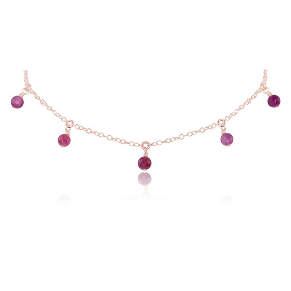 Ruby Bead Drop Choker in 14k Rose Gold Fill
