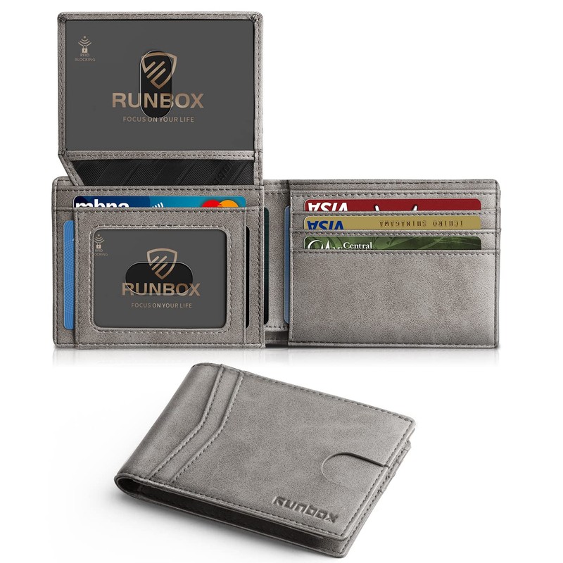 RUNBOX Slim Wallet for Men 15 Slots Ultra Large Capacity RFID Blocking Bifold Credit Card Holder with 2 ID Window